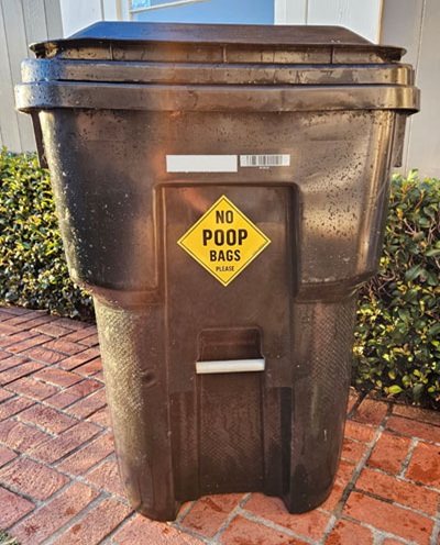 Place this sticker on trash cans, garbage cans, and waste containers to keep them free of unwanted, stinky dog poop bags.